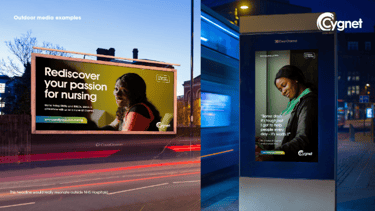 Distributed across multiple channels, the campaign generated 4.7M impressions, 3,750 applications, a 60%+ increase in nurse hires, and reduced cost per hire below the £3,000 industry standard.